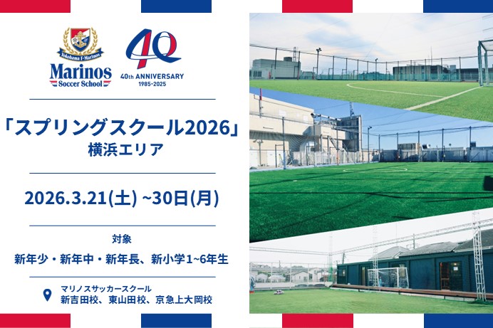 この度、マリノスサッカースクールでは「スプリングスクール2026(横浜エリア)」を開催いたします。