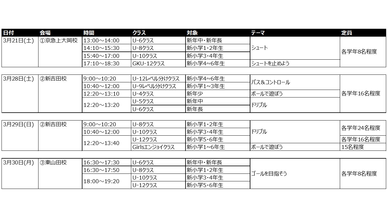 イベント・短期クリニック,東山田校,新吉田校,京急上大岡校,年少,年中,年長,小1,小2,小3,小4,小5,小6,GK,女子
