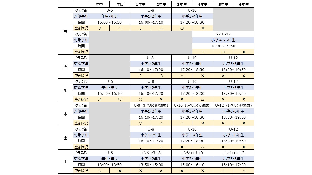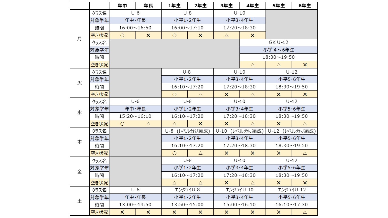 ※人数に応じて2クラスに編成してトレーニングを行う場合がございます。 - U-8・U-10・U‐12クラス(レベル分け編成)