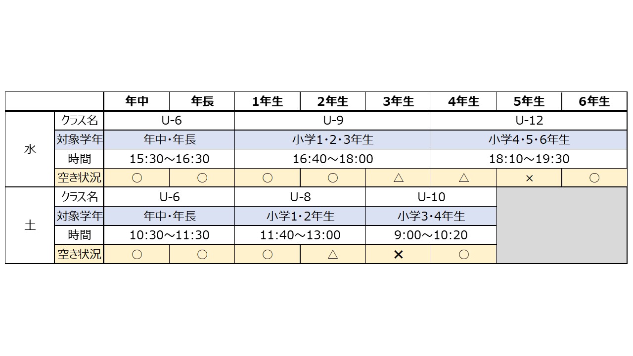 ※人数に応じて2クラスに編成してトレーニングを行う場合がございます。