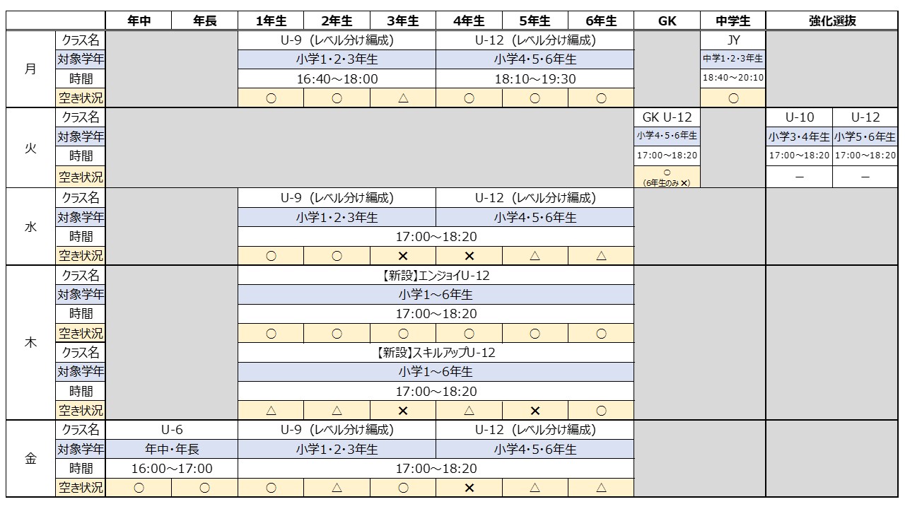 事務局からのお知らせ,追浜校,年中,年長,小1,小2,小3,小4,小5,小6,中1,中2,中3,GK,女子