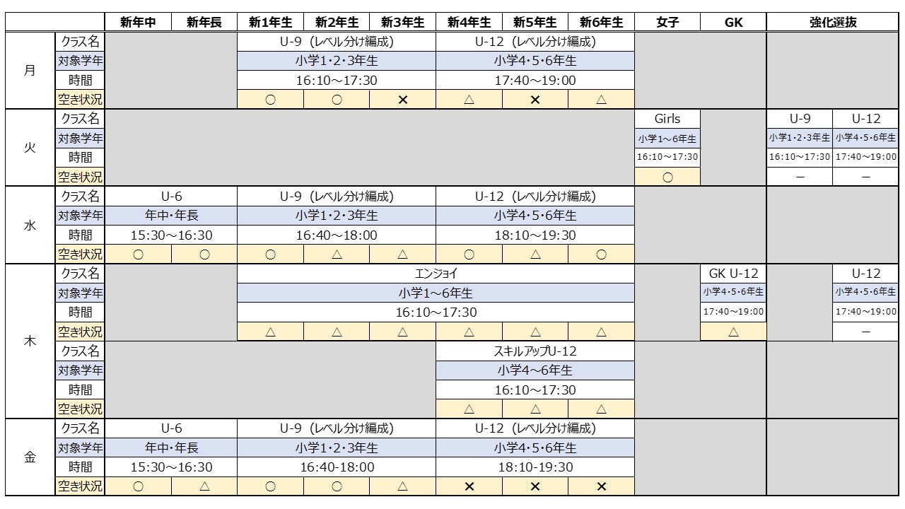 事務局からのお知らせ,大和校,年中,年長,小1,小2,小3,小4,小5,小6,GK,女子