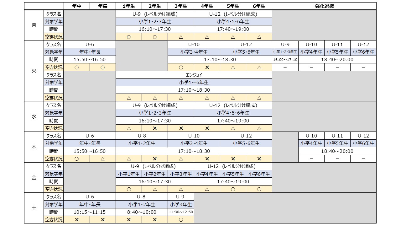 ※人数に応じて2クラスに編成してトレーニングを行う場合がございます。