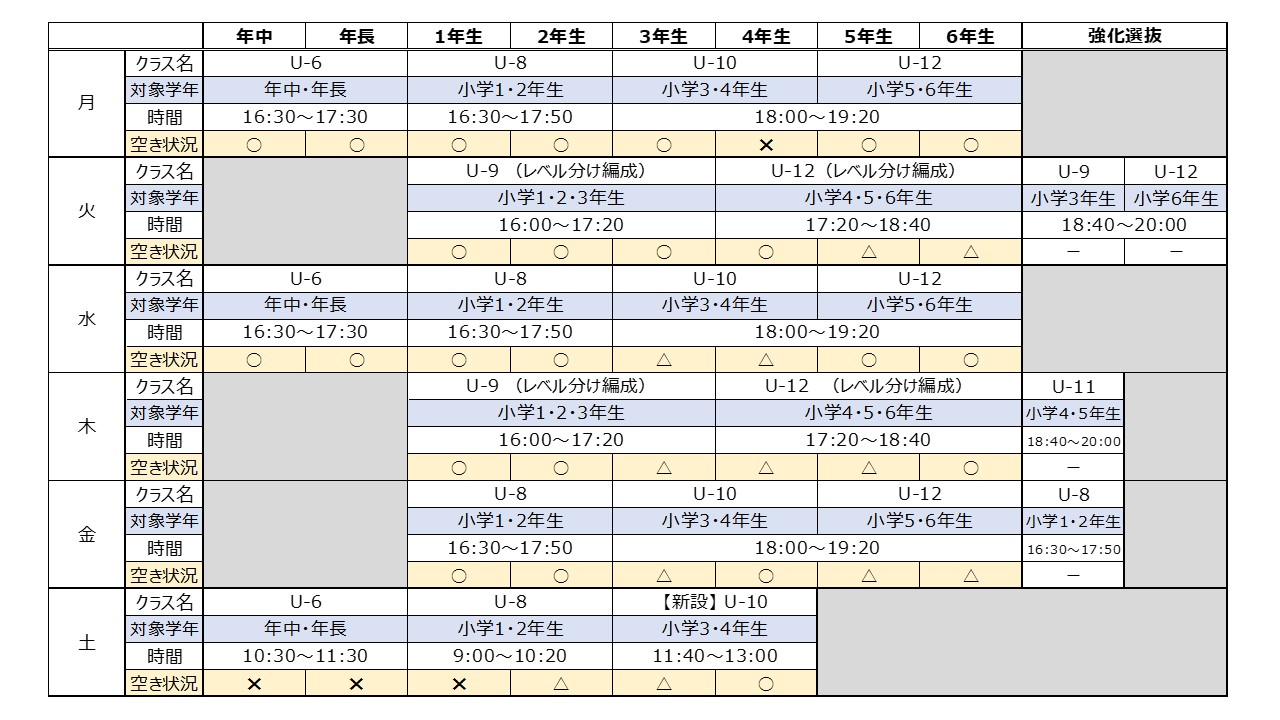 - U-8・U-10・U‐12クラス