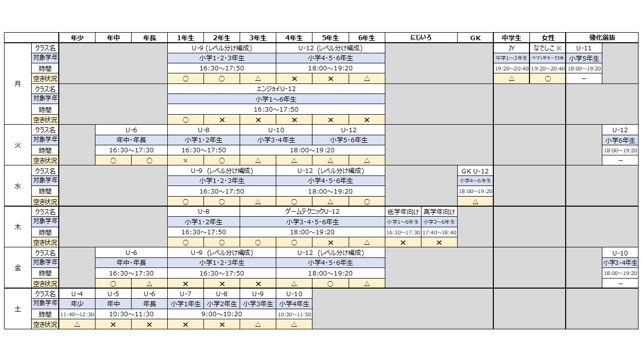 事務局からのお知らせ,新吉田校,年少,年中,年長,小1,小2,小3,小4,小5,小6,中1,中2,中3,GK,女子,大人
