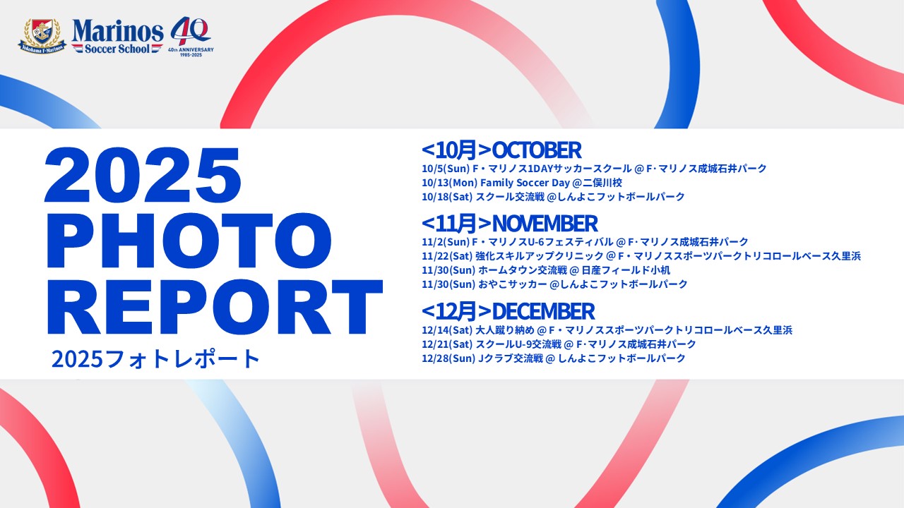 マリノスサッカースクールの「PHOTOREPORT」主にスクールのイベント活動について掲載させていただきます。 〈10月 OCTOBER〉 〈11月 NOVEMBER〉 〈12月 DECEMBER〉