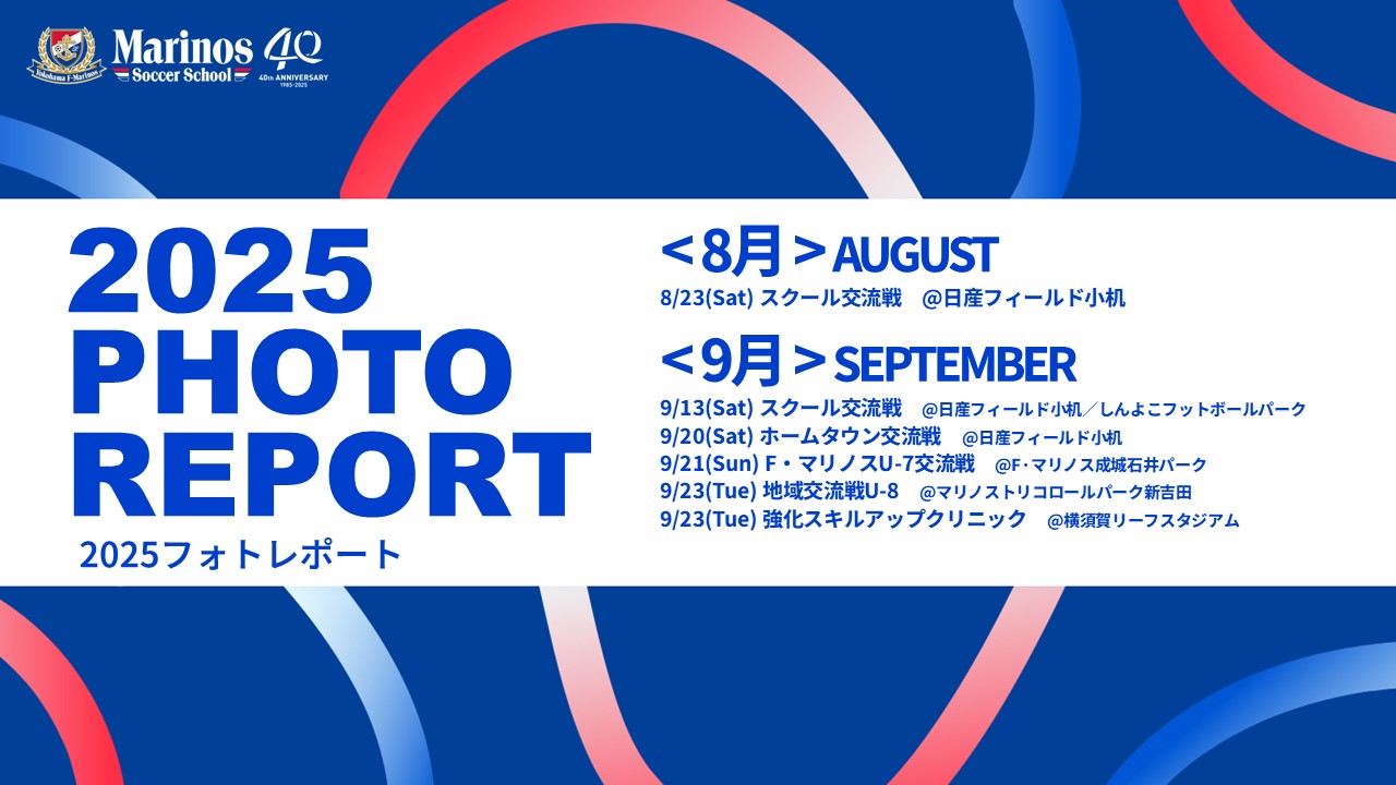 マリノスサッカースクールの「PHOTOREPORT」主にスクールのイベント活動について掲載させていただきます。 〈8月 AUGUST〉 〈9月 SEPTEMBER〉